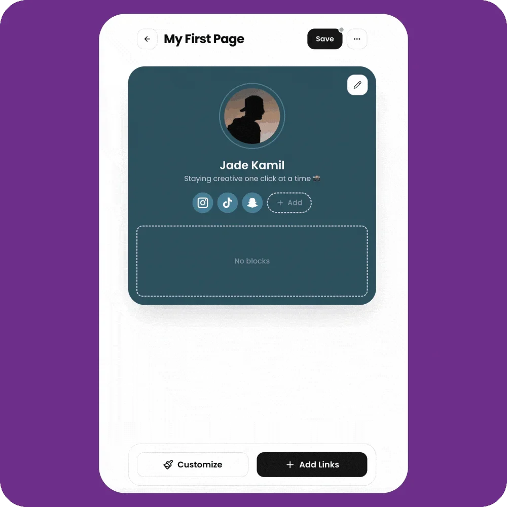 Social icons allow you to showcase your social media platforms in a clean, recognizable way using platform icons. This keeps your main links focused on content, products, or campaigns, while still giving your audience quick access to your socials.