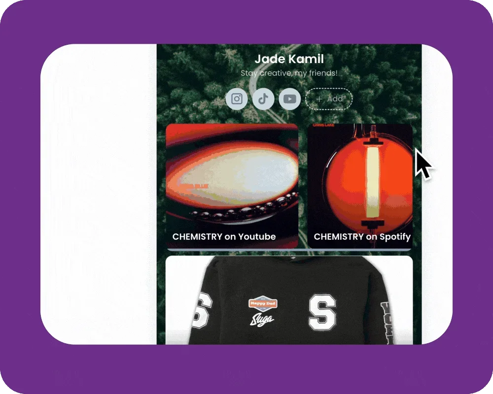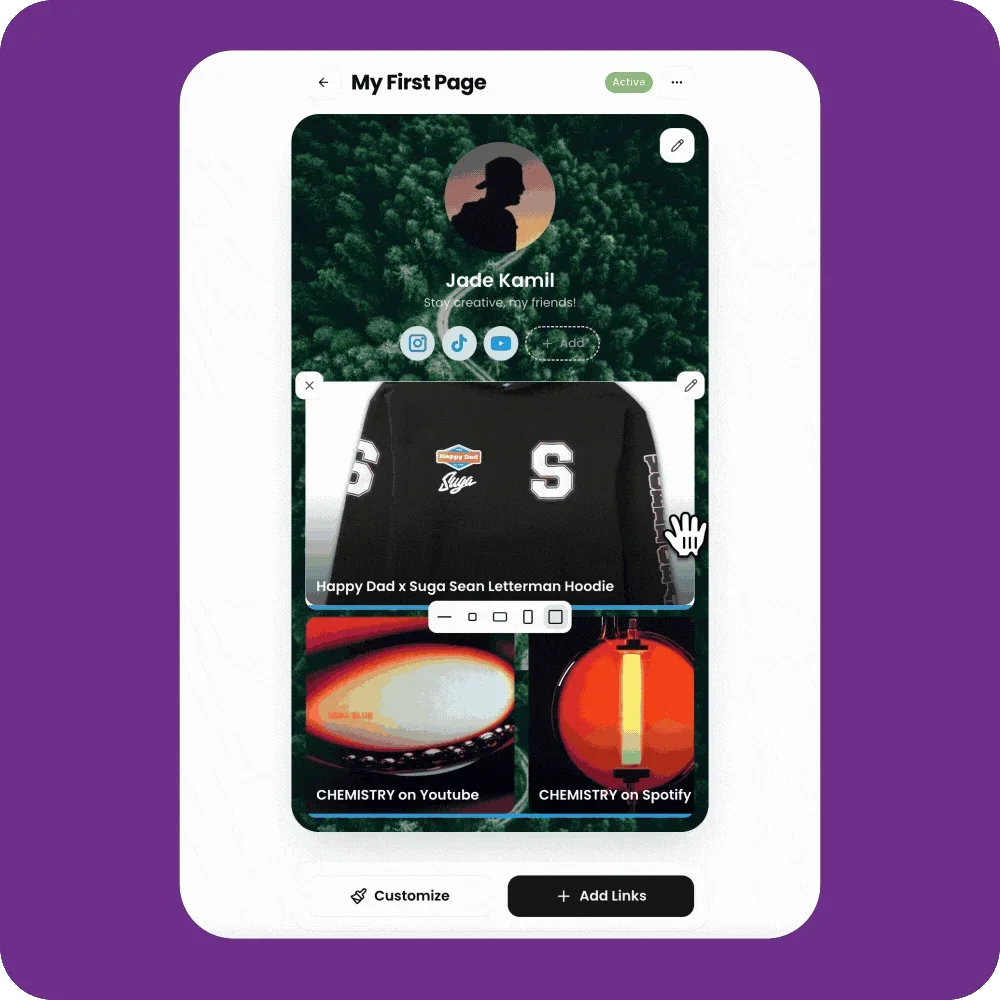 You can easily reorder links on your hoo.be profile to highlight what matters most. Links can be rearranged directly on your page or within individual link blocks using simple drag-and-drop controls.
